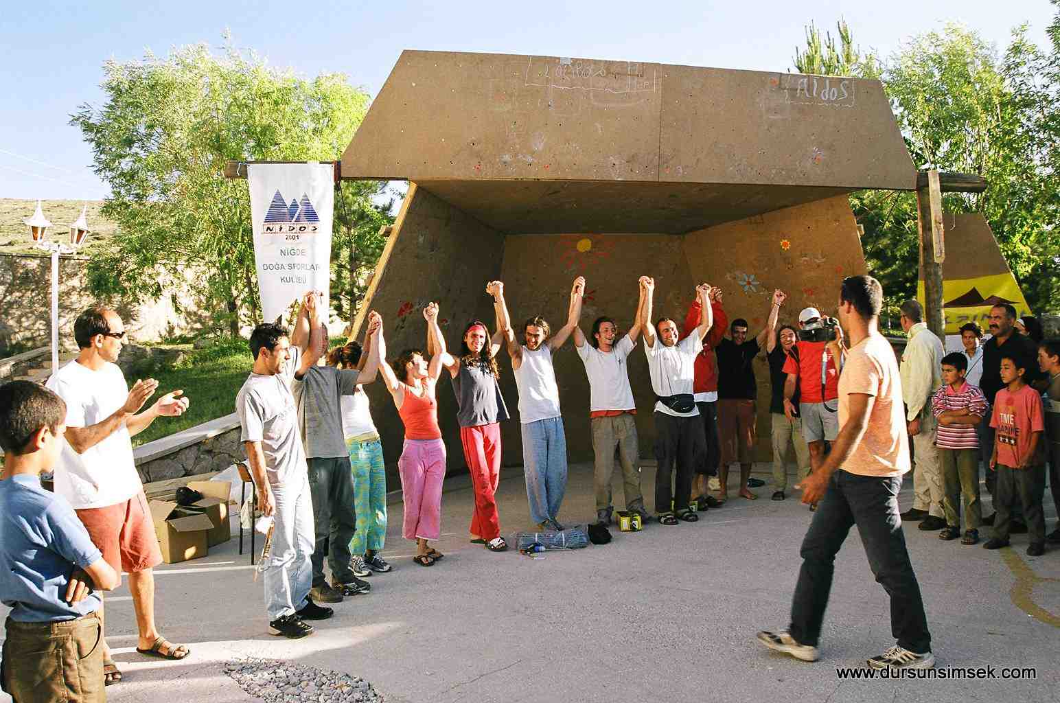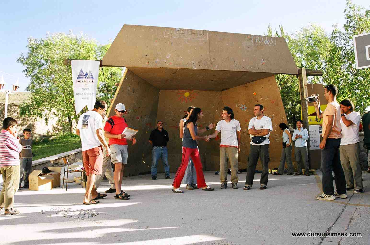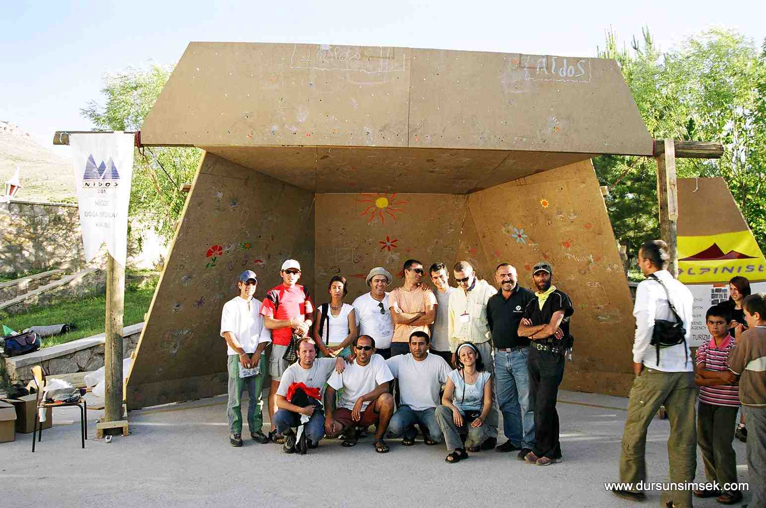 2004 yılında NİDOS’un sponsorluğunda Türkiye’de ilk açık hava yapay duvar tırmanış yarışması, Aladağlarda, dağ evinin bahçesinde yapıldı. Recep İnce, Nedim Urcan, Dursun Şimşek, Yusuf Biltekin, Baki Yavuz, Mehmet Emin Bağcı ve eşrafının, emeklerini esirgemeden yarışmaların yapılmasını sağladılar. Katılan sporcu arkadaşlarımız çok güzel tırmanışlara imza attılar. O tarihte çekilen fotoğrafların hepsi beğenilerinize sunulmuştur.