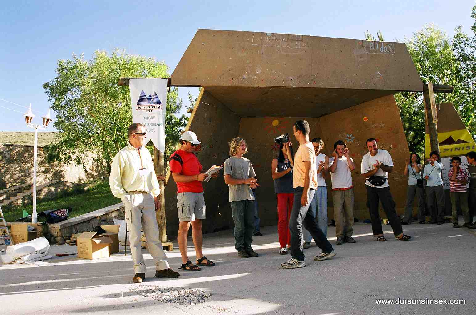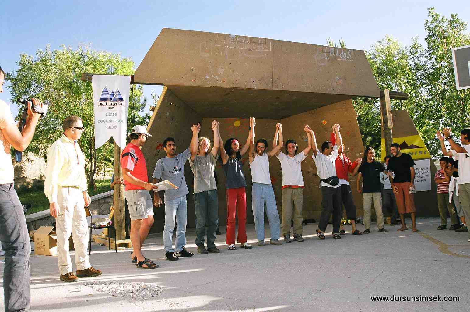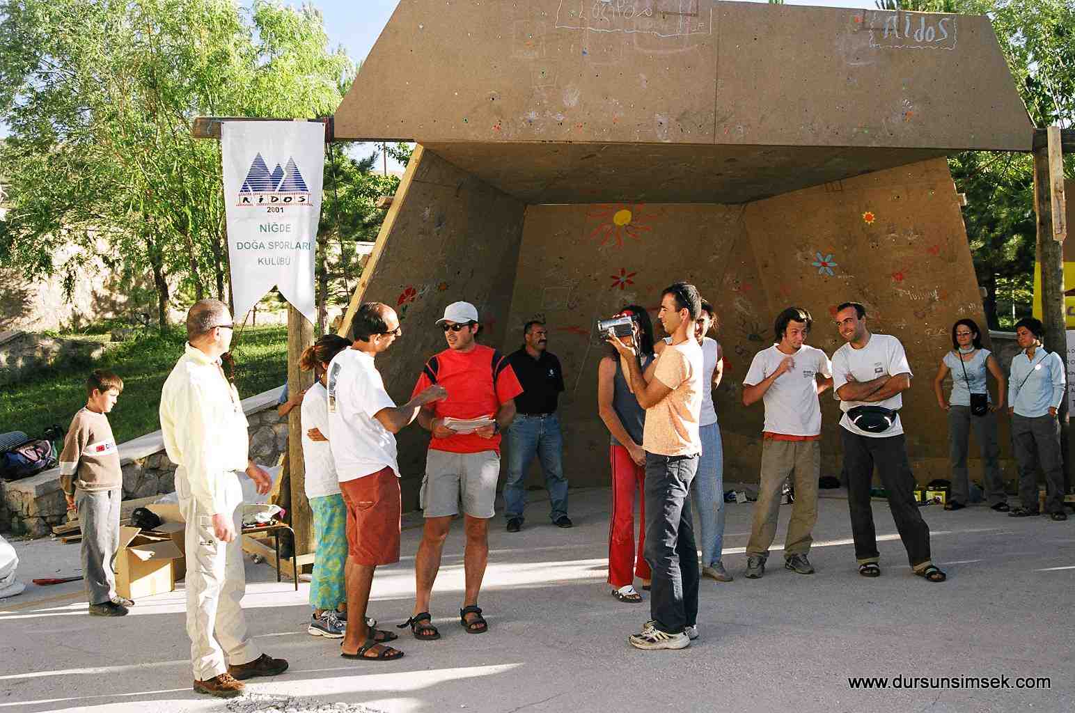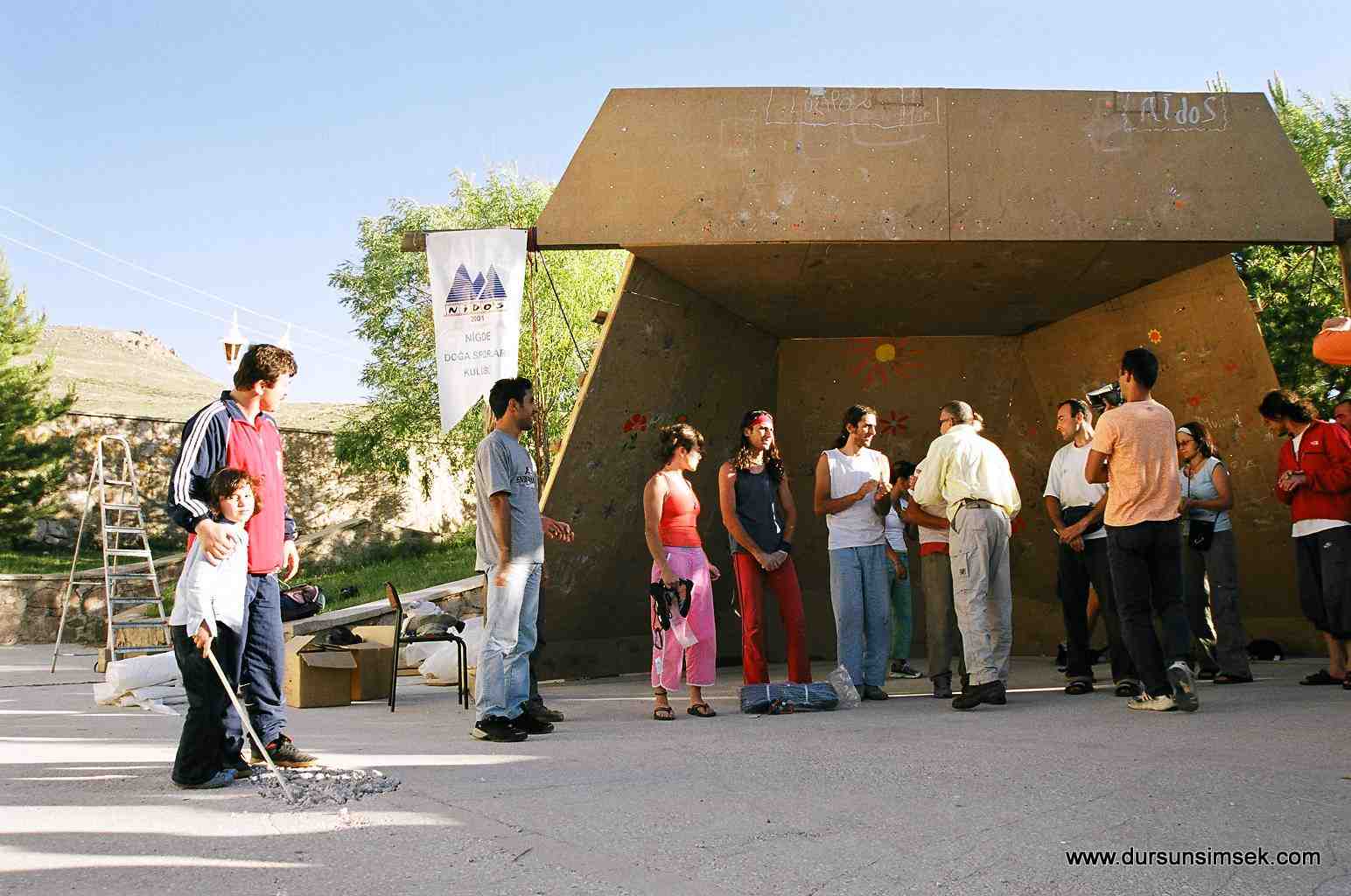 2004 yılında NİDOS’un sponsorluğunda Türkiye’de ilk açık hava yapay duvar tırmanış yarışması, Aladağlarda, dağ evinin bahçesinde yapıldı. Recep İnce, Nedim Urcan, Dursun Şimşek, Yusuf Biltekin, Baki Yavuz, Mehmet Emin Bağcı ve eşrafının, emeklerini esirgemeden yarışmaların yapılmasını sağladılar. Katılan sporcu arkadaşlarımız çok güzel tırmanışlara imza attılar. O tarihte çekilen fotoğrafların hepsi beğenilerinize sunulmuştur.