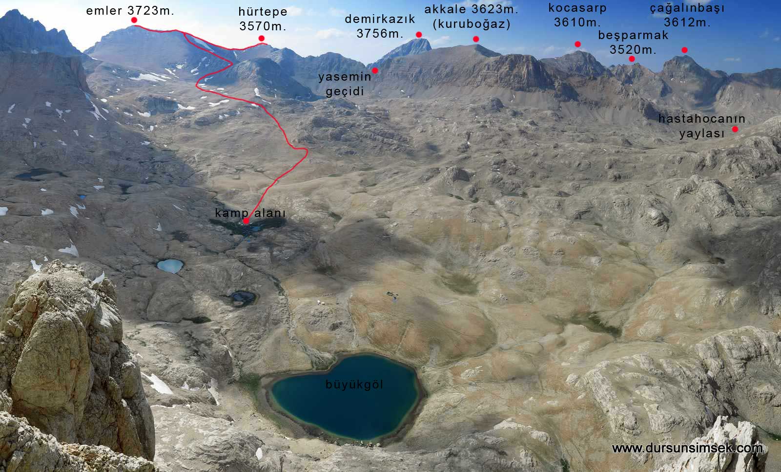 Yedigöllerden(3100m.) – Emler Tepe (3723m.) – Hürtepe (3570m.) – Bozkaya (3500m.) – Sokullu Pınarı (1920m.) Transı