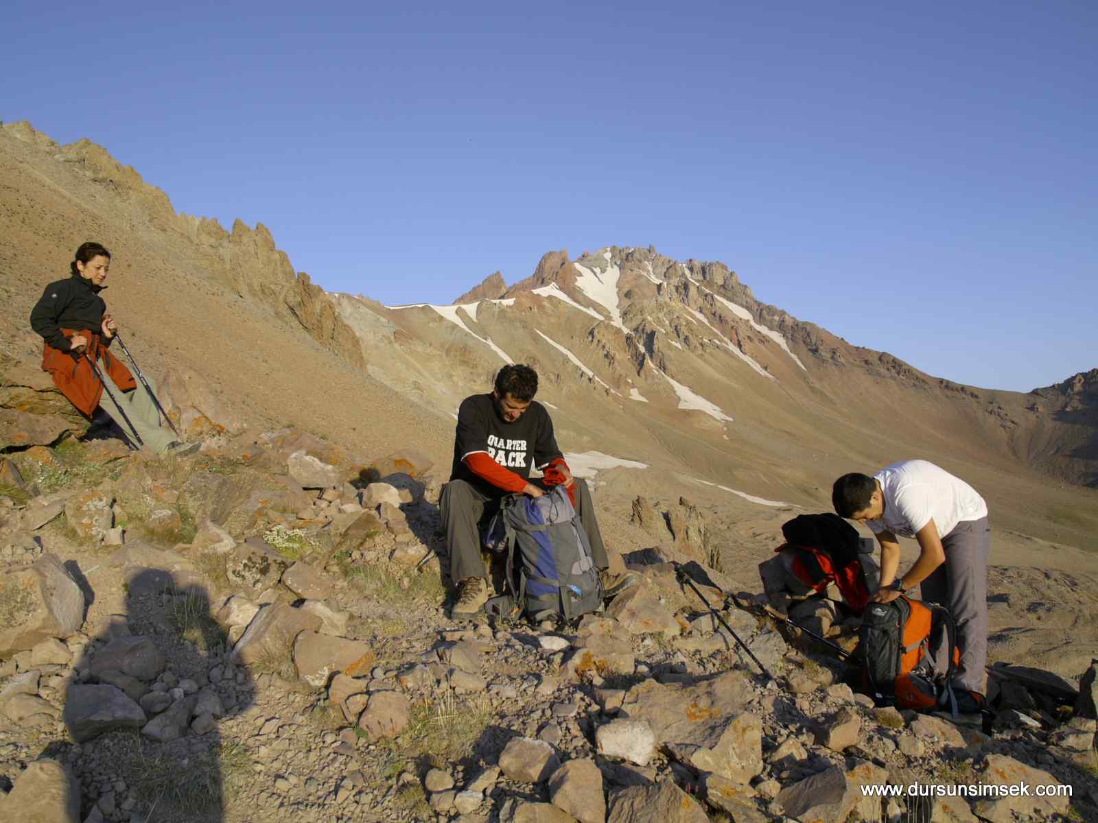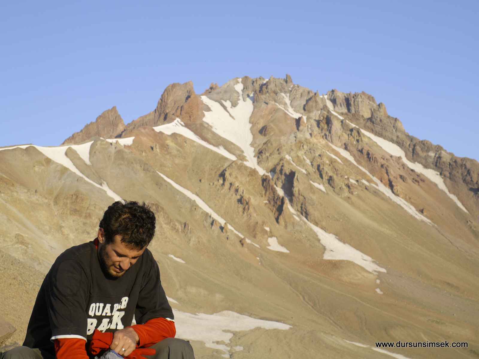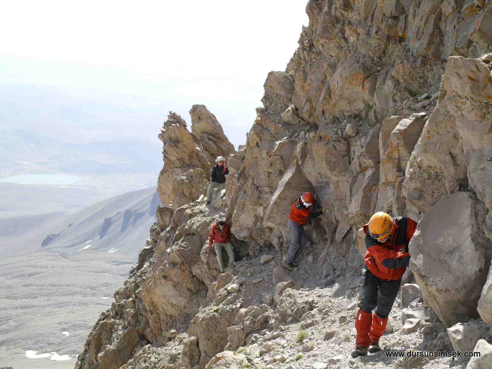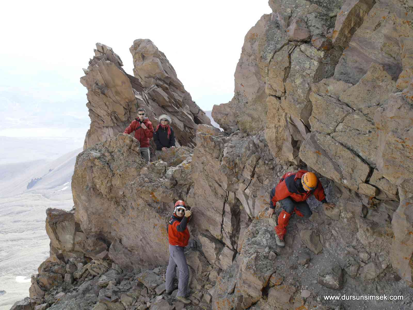 Öğle sonu ekiple beraber Gençlik Sporun tesislerine ulaştık. Akşam üzeri Çoban ini mevkiine aracımızla ulştık. Gece kampımızı kurup beslendik. Sabaha doğru klasik sırt hattına girdik. Benim en çok sevdiğim rotadır. Seyri fevkalade, fotoğrafı bol. Sırt hattıda güneşin doğuşunu izledik ve hörgüç kayaya ulaştık. İyi bir moladan sonra Hörgüç altında donmuş kar olduğundan Hörgücün üstünden zirveye ulaştık. Ana zirveye de çıktık. Burada bulunan ip güvensiz olsada ipten tutarak aşağıya indik. Mağarayı inceledik ve bütün yazıların fotoğrafını çektik. Sebebi ise her geçen gün bu eski yazıların tahrip edilmesi ve yeniden kazınıp yazılmasıdır. Nedense toplum olarak eski yazılara alerjimiz var. Zirvede bulunan mağaranın içi buz. Rivayete göre burada mezar var. Dönüşü ise dağın güneyünden yaparak hörgücün altına indik. Yanardağların çok çürük olduğunu bir kez daha teyit ettik. Ekibin bir kısmı Nesrin Topkapı rotasından indi. Diğerlerimizde klasik sırt hattında inişi tamamladı.