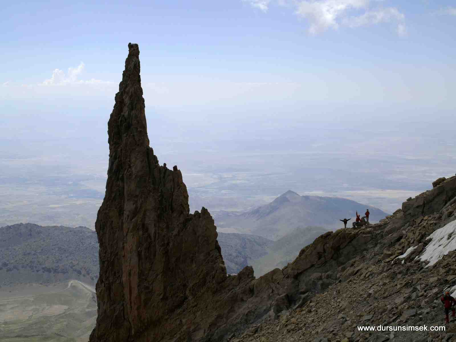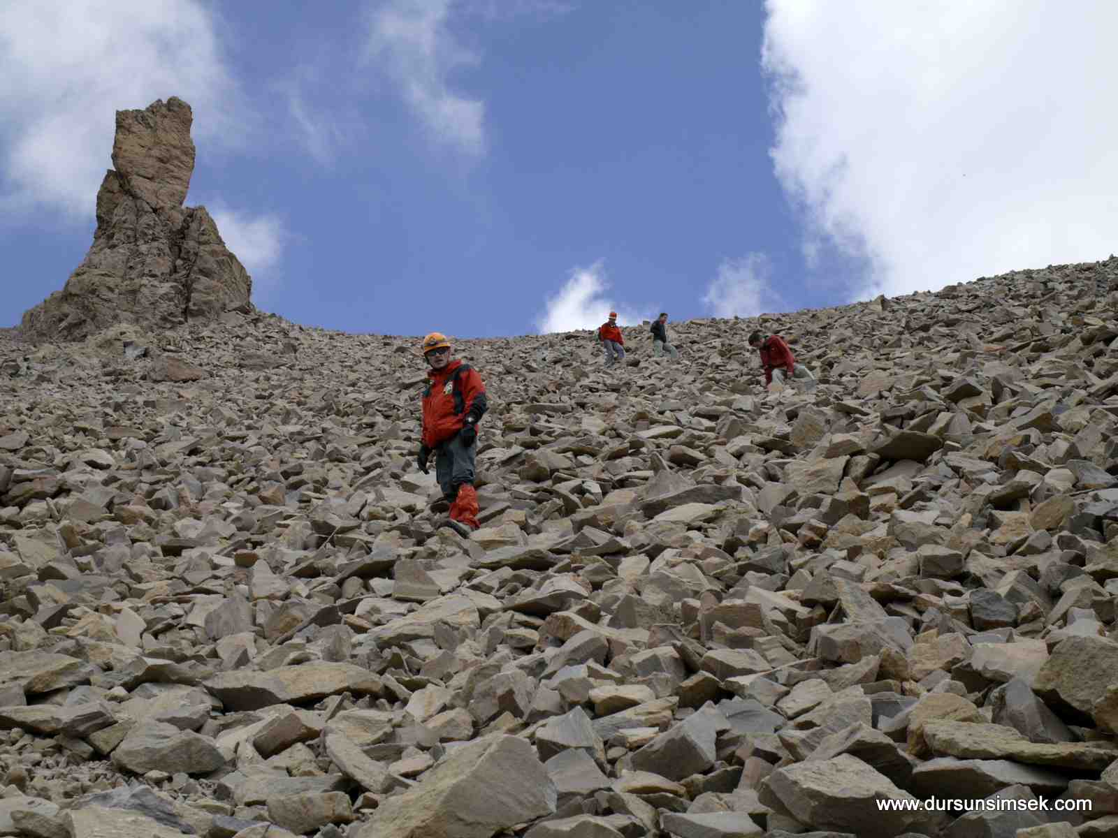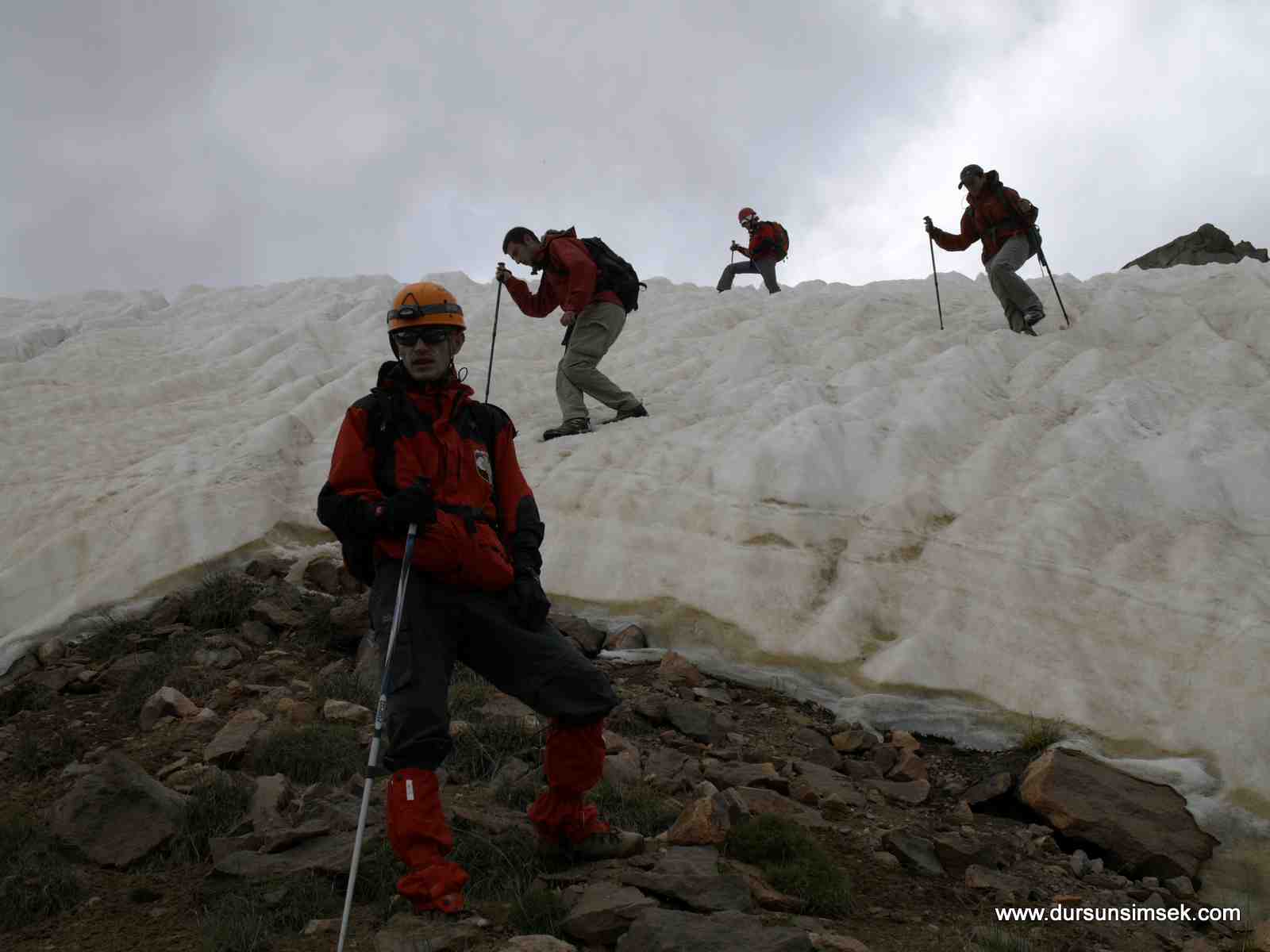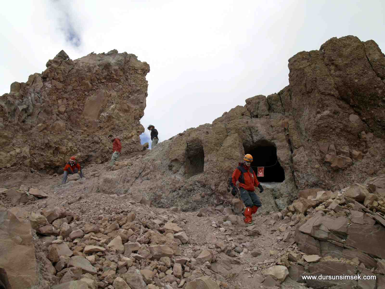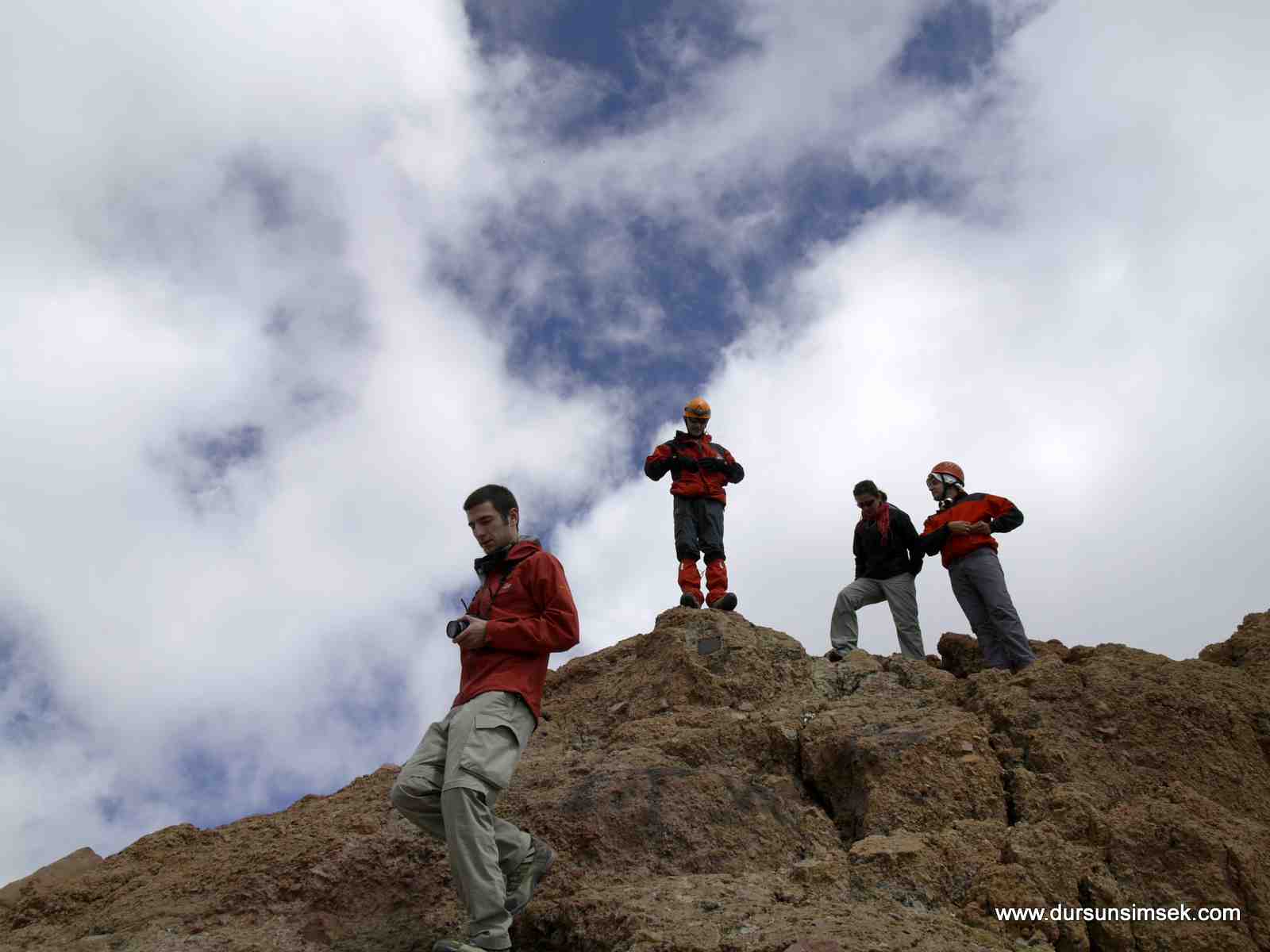 Öğle sonu ekiple beraber Gençlik Sporun tesislerine ulaştık. Akşam üzeri Çoban ini mevkiine aracımızla ulştık. Gece kampımızı kurup beslendik. Sabaha doğru klasik sırt hattına girdik. Benim en çok sevdiğim rotadır. Seyri fevkalade, fotoğrafı bol. Sırt hattıda güneşin doğuşunu izledik ve hörgüç kayaya ulaştık. İyi bir moladan sonra Hörgüç altında donmuş kar olduğundan Hörgücün üstünden zirveye ulaştık. Ana zirveye de çıktık. Burada bulunan ip güvensiz olsada ipten tutarak aşağıya indik. Mağarayı inceledik ve bütün yazıların fotoğrafını çektik. Sebebi ise her geçen gün bu eski yazıların tahrip edilmesi ve yeniden kazınıp yazılmasıdır. Nedense toplum olarak eski yazılara alerjimiz var. Zirvede bulunan mağaranın içi buz. Rivayete göre burada mezar var. Dönüşü ise dağın güneyünden yaparak hörgücün altına indik. Yanardağların çok çürük olduğunu bir kez daha teyit ettik. Ekibin bir kısmı Nesrin Topkapı rotasından indi. Diğerlerimizde klasik sırt hattında inişi tamamladı.