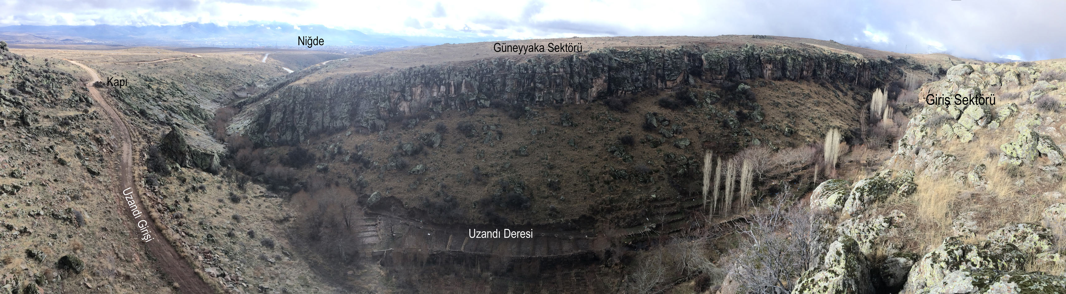 Tırmanış sektörlerinin başlangıç noktası Niğde Merkeze yaklaşık 7,5 Km. uzaklıktadır. Sektörün giriş noktası, Kırkpınar Köyü ve Gebere Barajının yol ayrımından 400 metre sonra sola dönen toprak yolla başlar. Buradan sektör uzunluğu yaklaşık 6 Km. kadardır. Uzandı vadisinde belirlemiş olduğumuz 12 tırmanış sektörü bulunmaktadır. Sektörlerin sayısı zaman geçtikçe arttırılabilir. Bu sektörlere üç farklı yoldan ulaşılır…