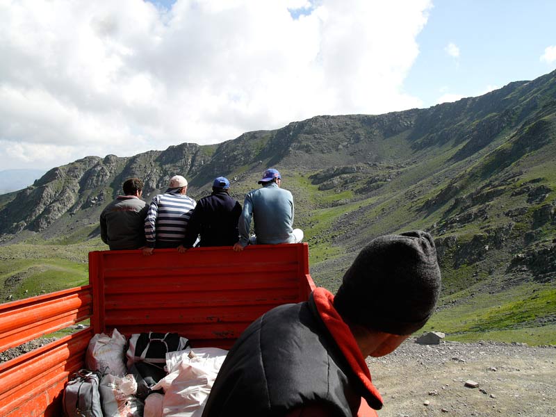 bizim kaymakam yedigöllere 1 km kala durdu. Muhtarla beraber pınarın başında piknik yapacaklar. Ben ceketi aldığım gibi yedigöllere. Az bir terledikten sonra tam yedigöllerin başında isuzu kamyonet, minibus ve arazi aracı yanlarında da biri selamlaştık. Yedigöllerden sırtlarında piknik tüpleriyle tenis torbalarıyla gürültülü çıkanlar. Neyse ben fotoğraflar çektim. Yedigölleri izledim. Sol tarafta gözüme kestirdiğim tepeye çıktım. Fotğraf çektim çektim çektim…sağ tarafta saat 2 yönünde verçenik dağı bulutların arasında bir baktım kamyoncular toplandı hemen hızlanarak ve hatta koşarak kamyonculara ulaştım attım kendimi kasaya haydi moryaylaya…