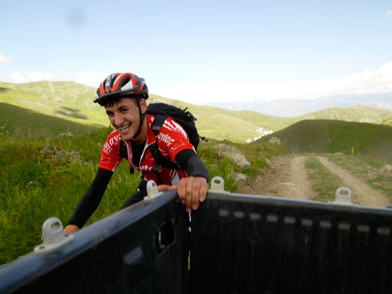 Yukarda ki konuşmalar olurken aklımdan bir sürü şey geçti. Neyse kızın oturduğu yer tuvaletli, misafirhaneli, yatmalı bir yer. Ben burda durmadan yola devam ettim. Moryayla ya gelirken karşıda yedigöl yolu göründü. 1 km gittim gitmedim motor stop etti. Yokuşu çıkmam diyor yüklü olmasa daha önce ki tecrübelerimden bu yolu hoplaya zıplaya çıkar diye düşündüm. Hemen bir u dönüşü yapıp tekrar yolun zincirlendiği wc si yatma yeri olan yere döndüm. O anda zincirl yerde iki tane jeep yedigölleri soruyordu. Hemen jipin kasasını gözüme kestirdim. Erestek-kerestek, öteden beriden, rica minnet kasaya montumu ve makinemi aldığım gibi atladım. Kulak misafirliğimden içlerinden birinin kaymakam olduğunu duydum.yedigölleri görmeye gelmiş. Motorla yolu çıkamayıp dönerken 3 tane dağ bisikletçisiyle kafa selamıyla selamlaşmıştık. Makinamı çıkardım karşı yamaçların fotğraflarını çekerken pikabın arkasından bir abi beni de çek diyor bir de baktım bizim kafa selamı verdiğimzi bisikletçilerden biri. Abi ben biraz antremansızım diğerleri antremanlı. Anlayacağınız küçükken yaptığımız kamyonetlerin at arabalarının beygir gücünden yararlanmak hemen bir el kasada bir el gidonda yola devam…